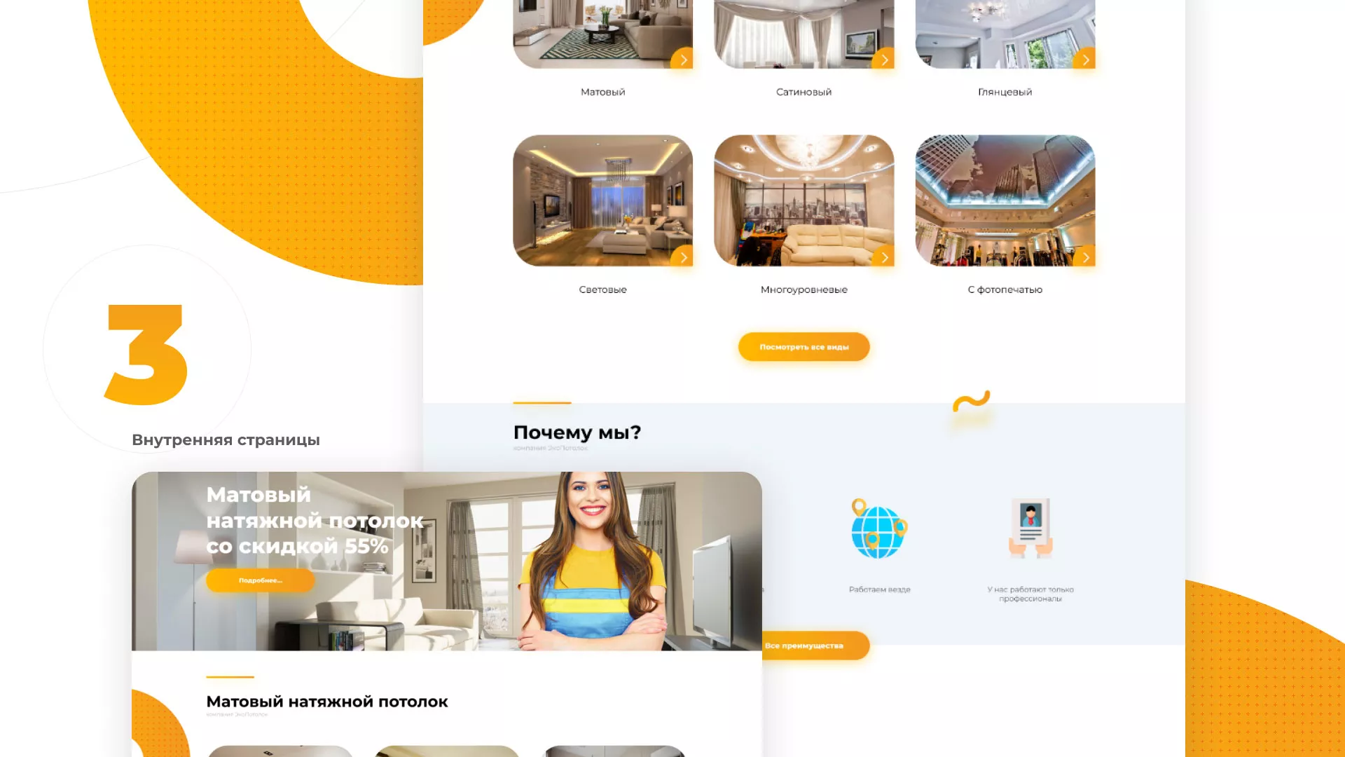 Вам нужна разработка сайта по натяжным потолкам в Кондрово? Специалисты компании «Мультзавод» готовы помочь! Мы предлагаем большой выбор уже готовых вариантов, а также можем создать и что-нибудь новое!